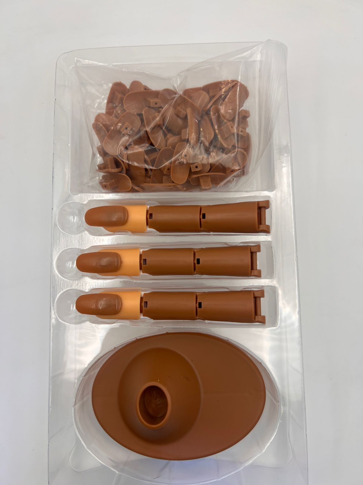 Modern training hands are designed with realistic features such as flexible fingers and adjustable positions, making them ideal for simulating real salon conditions. Some advanced models can be clamped onto a table for stability, giving users better control while practicing intricate nail art or detailed shaping. This helps improve hand positioning, brush control, and overall precision.
